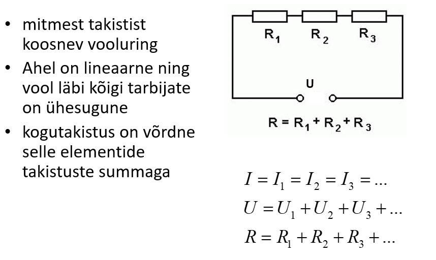 Takistuse jagaühenduse korral kasutatakse jargmised valemid: