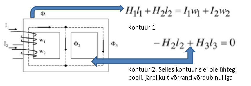 magnetomotoorjõu (F1 ja F2)
