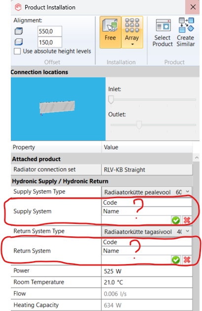 Radiaatorid: Esiteks ei näita mul radiaatorit pannes Supply system ega Return System, selliselt nagu see on videos, mille kohta käib järgnev foto: